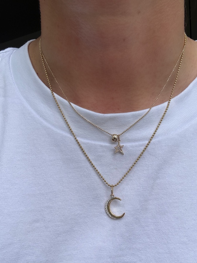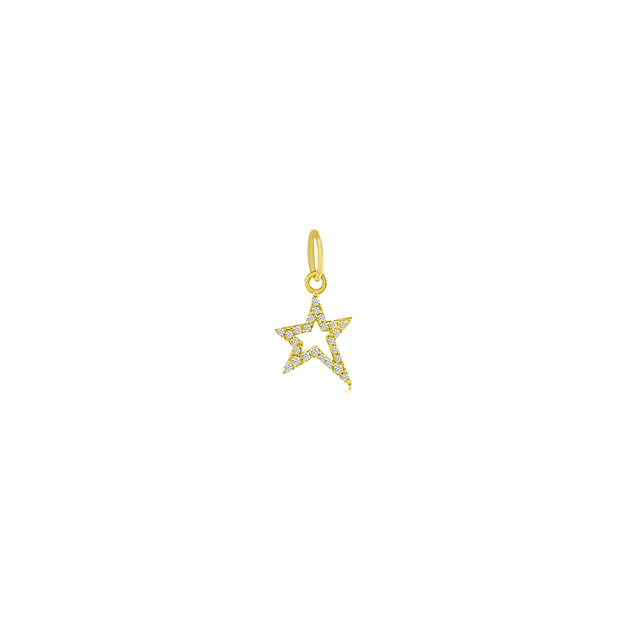 A little sparkle with big personality. This open star charm, crafted in solid gold and set with delicate white diamonds, has an intentionally uneven silhouette that gives it a modern, playful edge. Perfect on its own or layered into a charm stack, it’s a reminder that your shine doesn’t need to be symmetrical to stand out.
