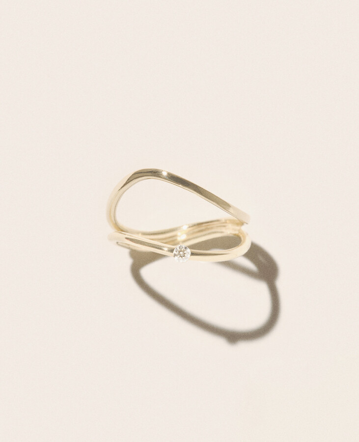 Inspired by the fluid, shifting curves of sand dunes, the Dune N°2 ring celebrates movement through a softly sculptural double band. Two gently undulating golden lines wrap the finger in an elegant, open silhouette, creating a sense of lightness and flow.
