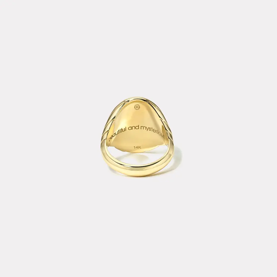 Back of ring is engraved with the message 'Beautiful and Mysterious'