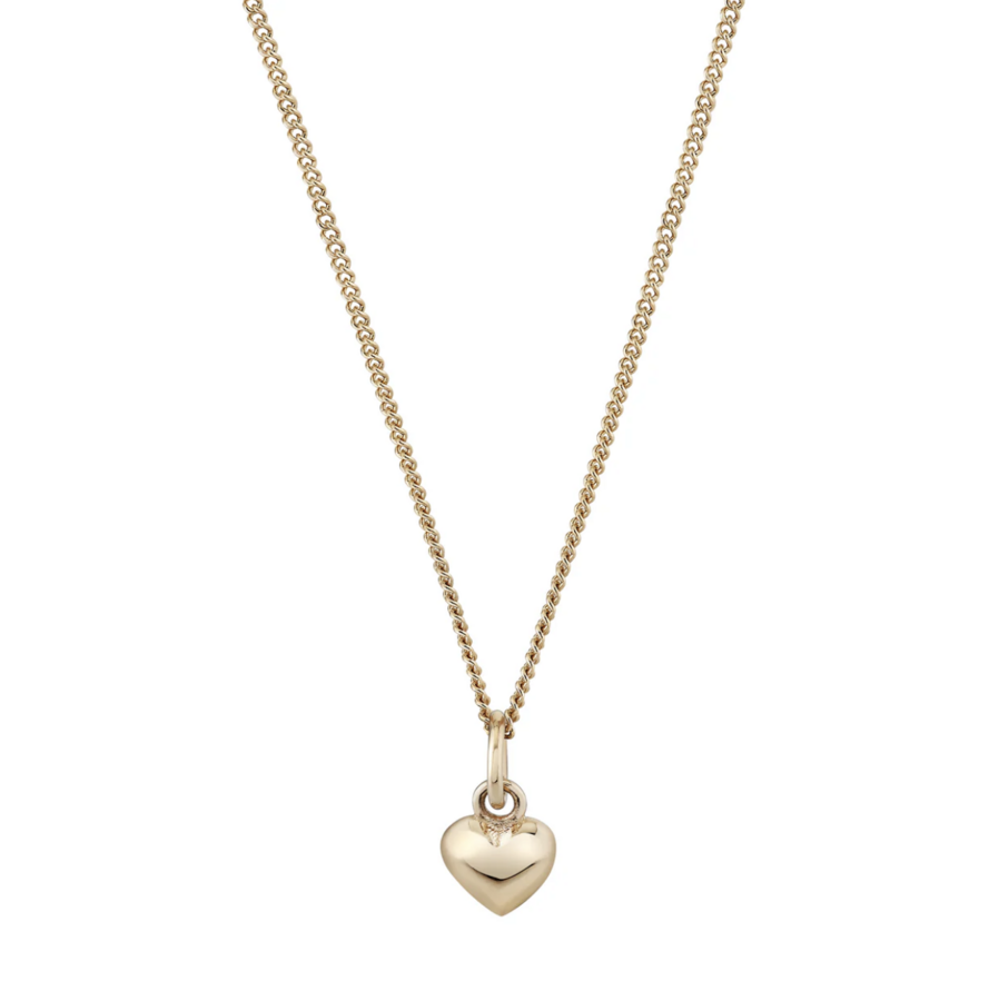 Small and sweet (but still cutie) the Petite Puffed Heart Charm is solid 14k yellow gold. Perfectly sized for a dainty solo moment or layered with larger charms. We like to wear ours with a baby cuban chain. It's sleek, classic, and so good with a T-shirt and jeans.