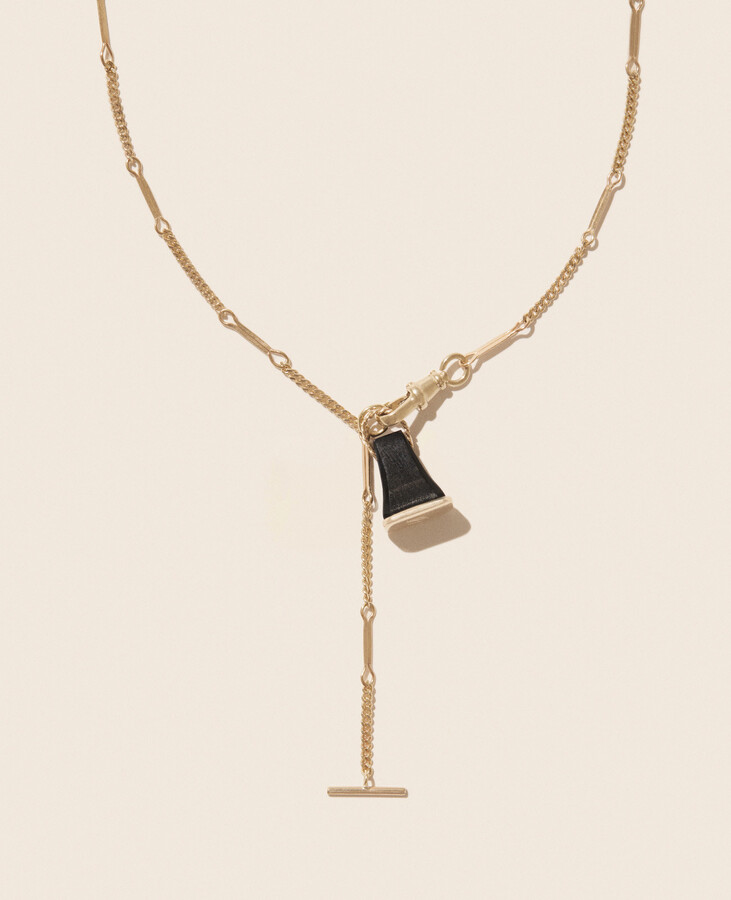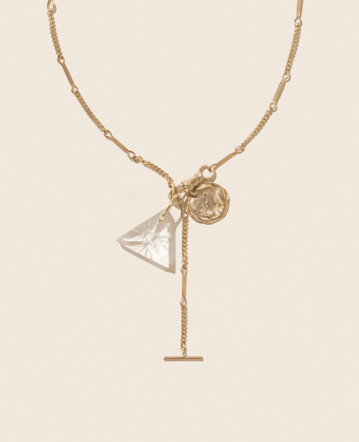 This necklace by Pascale Monvoisin is all about subtle impact. Crafted in 9K yellow gold, the chain features links of varying sizes, creating gentle movement and a soft play of light along the neckline. Designed to be worn as a lariat, the signature T toggle can be styled at the front for an effortlessly modern finish.