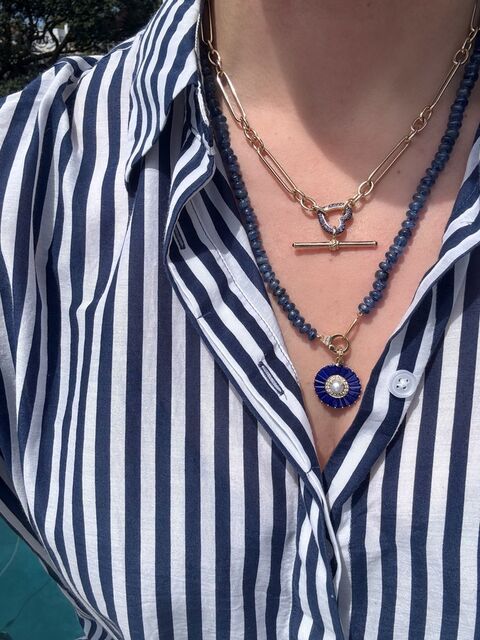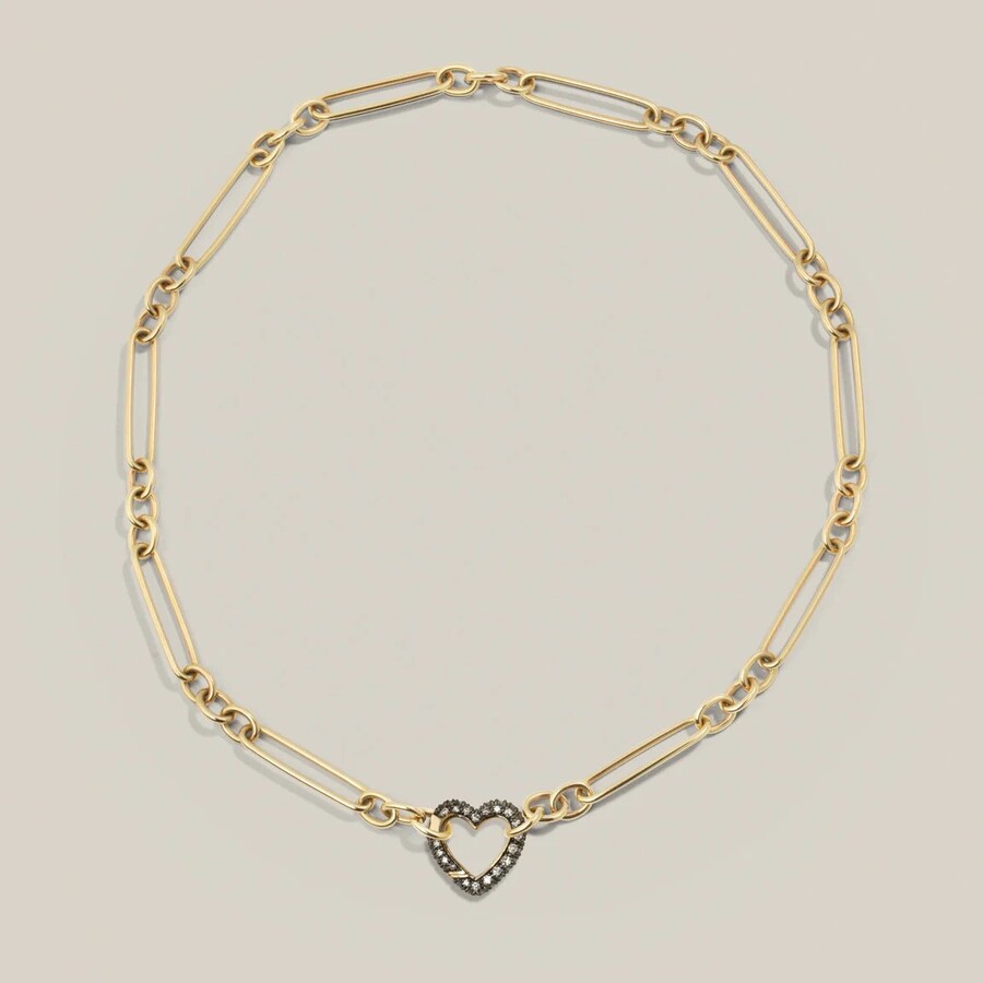 Heartfelt, but make it blue. This 14k gold Victorian-set sapphire heart pavé connector shimmers with deep blue sapphires, bringing a touch of bold colour and elegance to any chain. Designed to link, layer, and love, it’s a modern take on sentiment — a little edge, a lot of heart.